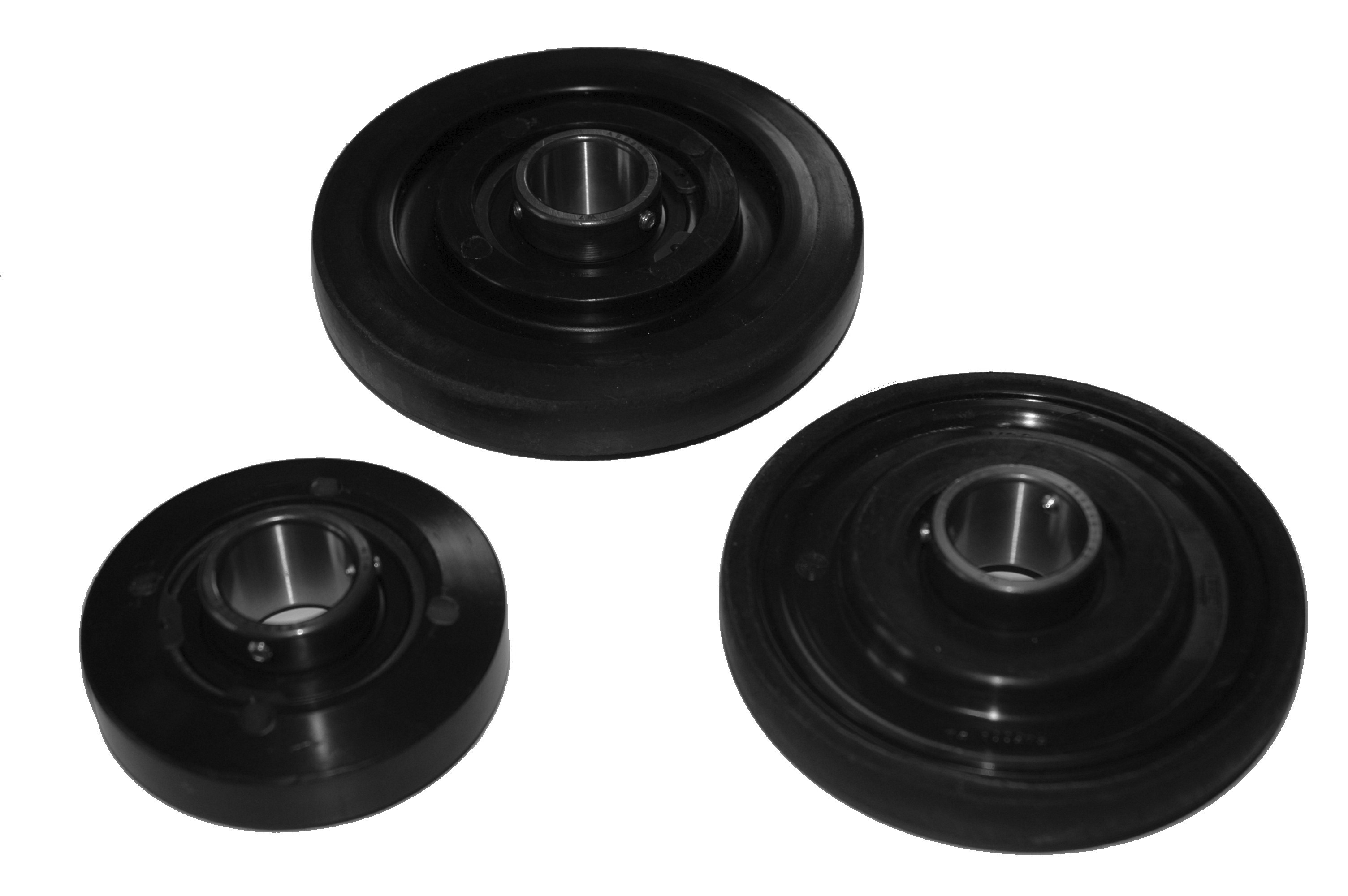 Idler wheels with a 1” ID bearing and set screw locking. Works great to slide onto a rear suspension arm to deflect the track. Sold individually.
