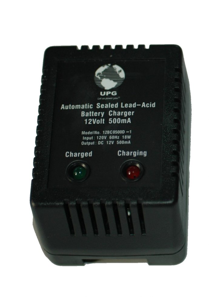 Automatic SLA (Sealed Lead Acid) Battery Charger with LED Indicator, 12VDC 500 mA, 6′ Cord w/Alligator Clips
